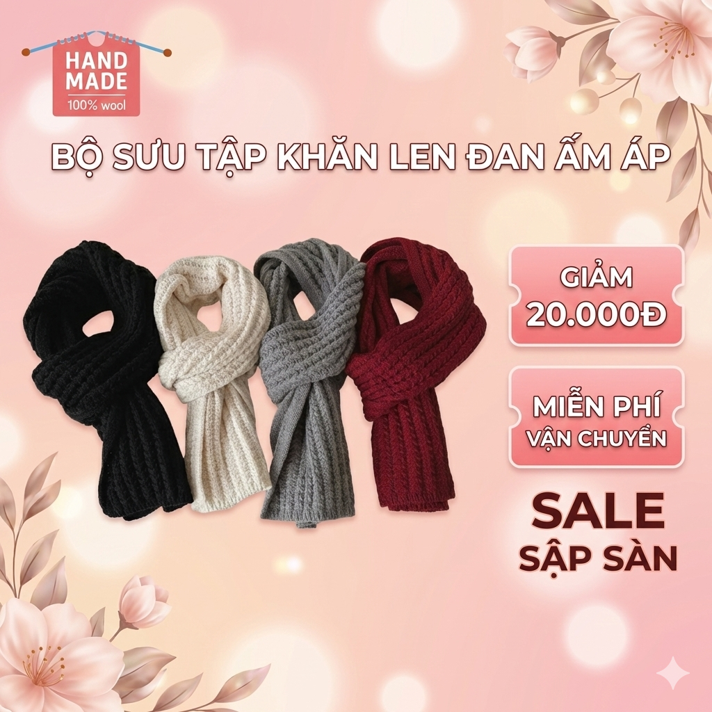 Chiếc khăn choàng len mềm mại, được đan tay tỉ mỉ với họa tiết ô vuông độc đáo, mang đến sự ấm áp và phong cách cho mọi trang phục. Có sẵn 3 màu sắc thời thượng: Xám thanh lịch, Xanh cá tính, và Nâu Đỏ trầm ấm.